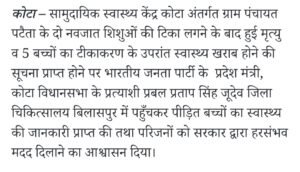 Blog प्रबल प्रताप सिंह जूदेव जिला चिकित्सालय पहुंचकर पीड़ित बच्चों के परिजनों से मिले और राज्य शासन की ओर से हर संभव सहयोग का आश्वासन दिया MRRP NEWS AGENCYSeptember 2, 2024 357 Facebook Twitter Skype Messenger Messenger WhatsApp Telegram MRRP NEWS AGENCYSeptember 2, 2024 357 Facebook Twitter Skype Messenger Messenger WhatsApp Telegram Share Facebook Twitter Skype Messenger Messenger WhatsApp Telegram Viber Line Share via Email