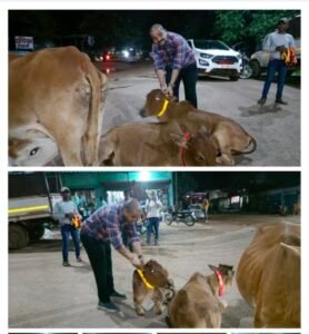 आवारा मवेशियों से होने वाली सड़क दुर्घटना को रोकने हेत 250 रेडियम बेल्ट आवारा मवेशियों के गले में बांधा गया, एवम सड़क मे बैठे मवेशियों को किनारे किया गया।